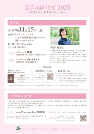 12月~令和8年2月内に2回実施し、募集対象は、高校文芸部のほか、文学・執筆に興味、関心のある高校生や大学生など。オンライン配信システム(Zoom等)を使用する。申込は、「文学の国いわて」HP内専用フォームから受け付けている。