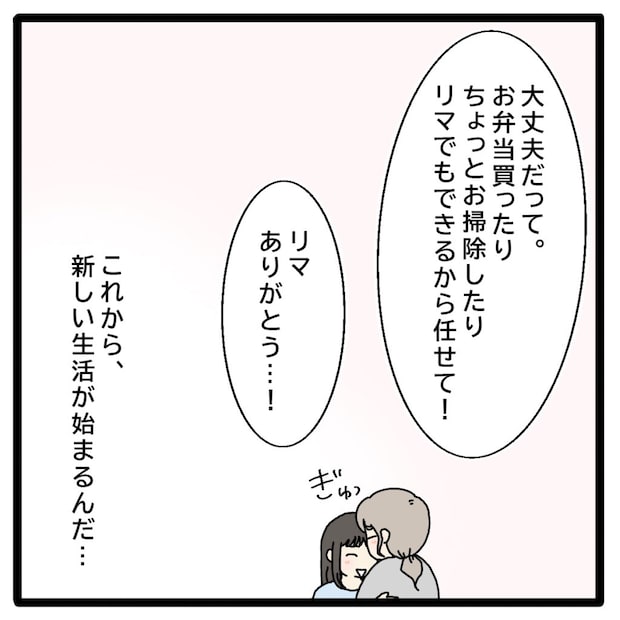 私の心配をよそに「大丈夫だって。お弁当買ったりちょっとお掃除したり、リマでもできるから任せて!」と頼もしい言葉を口にするリマに「ありがとう・・!」と私のほうが勇気づけられました。これから新しい生活が始まるんだ・・。不安もたくさんあるけれど、リマと2人で前向きにやっていこうと思います。