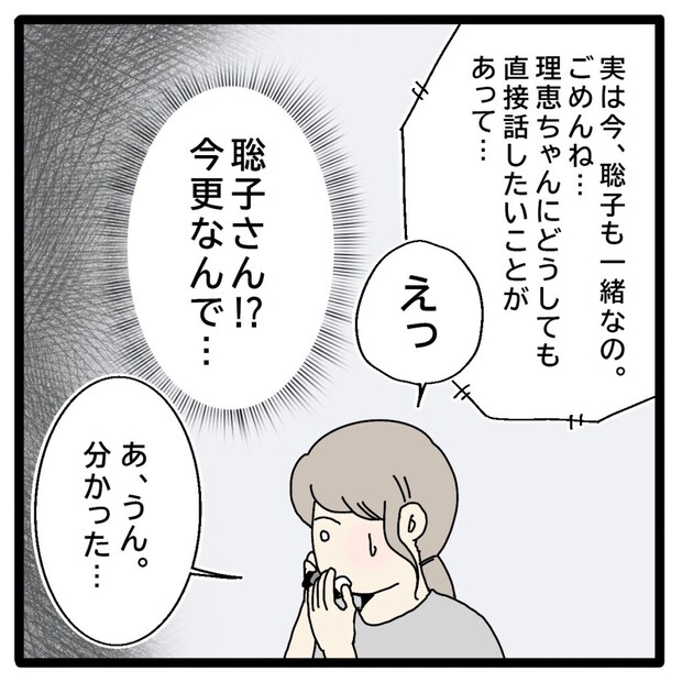 まずは離婚が無事に成立してホッとしましたね。しかし、これからリマちゃんと二人で新しい生活が始まるというときになって突然理恵さんに会いたいと言ってきた聡子さん。正志さんは、理恵さんから聡子さんに連絡をしないことが離婚条件だと言っていましたが、聡子さんの方から会いにくるなんてどういうことなのでしょうか。