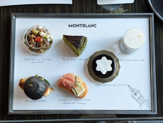 また、脳の活性化効果があるとされているサバを使用した「サバのブラックスライダー」や、ドレッシングの器に「モンブラン」のインクボトルを使用した遊び心あふれる「ガレットロール」など、ブランドの世界観をちりばめたセイボリーにもぜひ注目してみて。