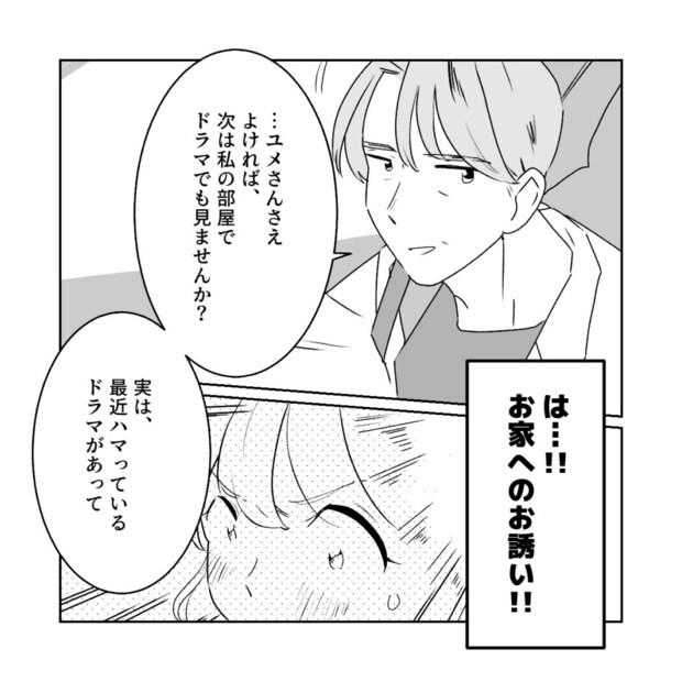 しかし、この日の別れ際、「・・ユメさんさえよければ、次は私の部屋でドラマでも見ませんか?実は、最近ハマっているドラマがあって」と和男さんが言いました。はっ・・!ついにお家へのお誘い!!嬉しいような恥ずかしいような・・すぐに言葉が出ませんでした。