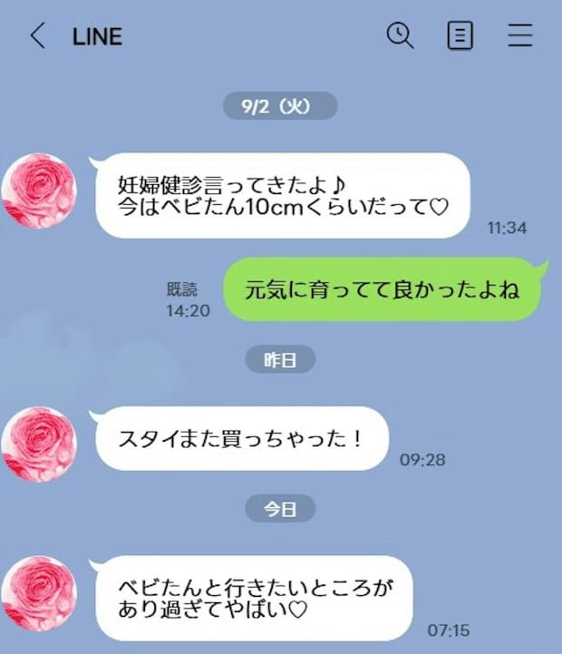 まだまだ産まれるの先なのに、産まれたらどんな顔してるんだろうとか性格が…とか産まれたらどこどこ行きたいとか…そんな話は家族感でしてくれと思うような内容を毎日LINEしてきます。