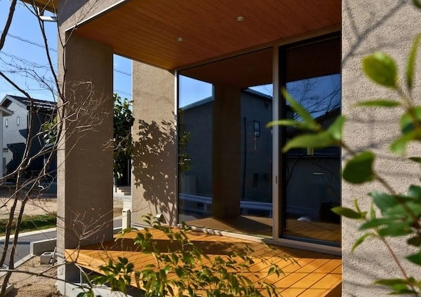 植栽とフェンスによって外部からの視線をやわらかく遮り、カーテンを閉めきらなくても安心して暮らせる住環境が実現された。