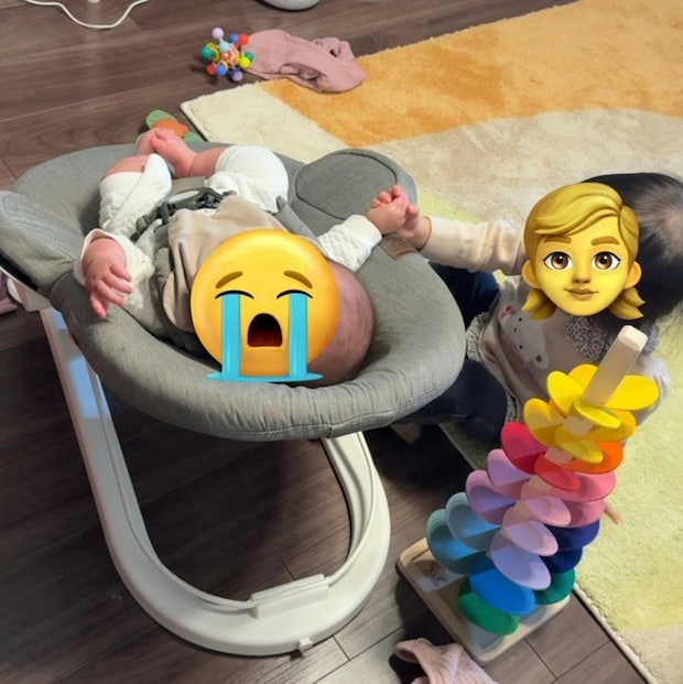 泣いている妹に、そっと寄り添う2歳の娘さん。妹さんは生後6か月。まだ言葉で気持ちを伝えることはできません。「チャイいるよ。ママもいるよ、ダダも、おーたん(犬)もいる。みんないるよ」2歳さんなりに、不安を和らげようとしているのが伝わってきます。今できる最大限のやさしさですね。小さな体で誰かを思いやることを知っているなんて、本当に尊いことです。