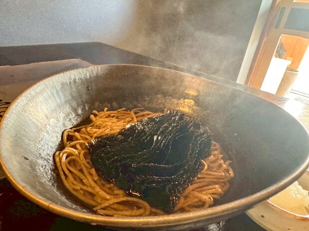 湯気立つお蕎麦に、磯の香り豊かなのりがたっぷり!