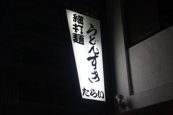「ごちそうさま」と店を出ると、商店街のネオンがすこしまぶしくて、夜風が気持ちよかった。見上げた白い看板には、変わらず「うどんすき」の文字。