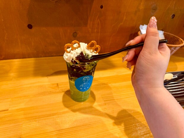 抹茶ラテにたっぷりの生クリームとスイーツを重ねた「飲むパフェ」は、見た目にも華やかで“まるでスイーツを飲んでる感覚”。