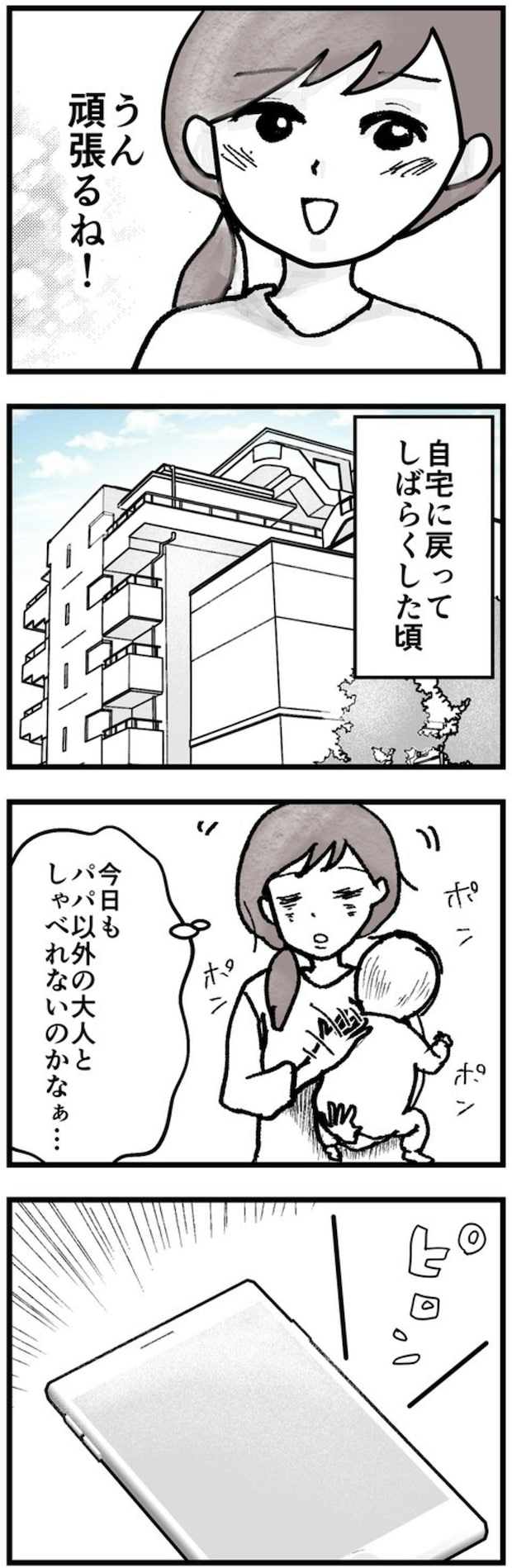 赤ちゃんと二人きりの毎日で「パパ以外の大人としゃべれない…」と孤独を感じていたとき、スマホに1件の連絡が届きました。