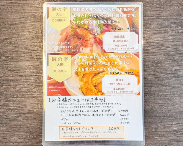 数量限定の海鮮丼や大穴子の天ぷら丼、特製スープカレーや鶏のから揚げ、オムライスにローストビーフ丼などなど。