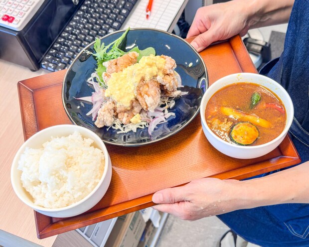 鶏のから揚げ甘酢タルタル&スープカレー(味噌汁を変更)