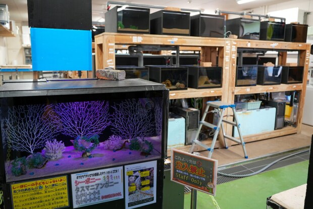 餌には生きたプランクトンをあげていて、生の餌を使うと水が汚れやすくなるため、水槽は1週間に1回掃除しているそうです。