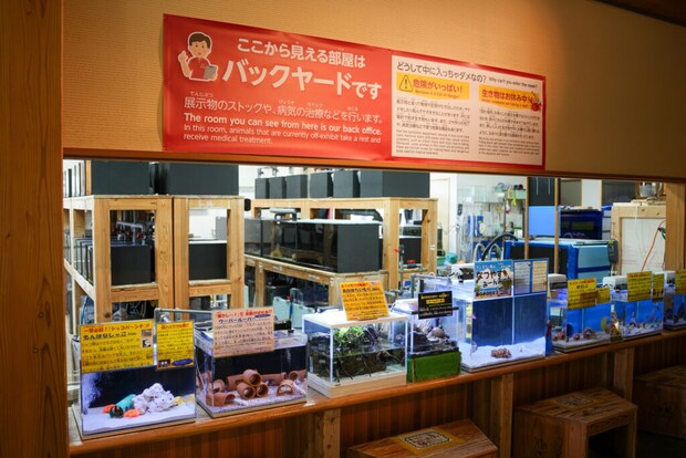 通常は見ることができない飼育や治療中の生き物の様子も、カウンター越しに見学できます。