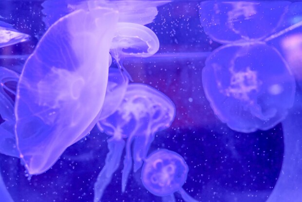 このクラゲは、色や大きさがバラバラで、一匹一匹に個性があります。毒はほぼありません。