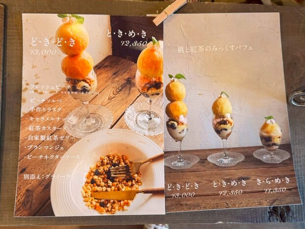 今回いただいたのは、夏の主役・桃をふんだんに使った「桃と紅茶のみっくすパフェ」。