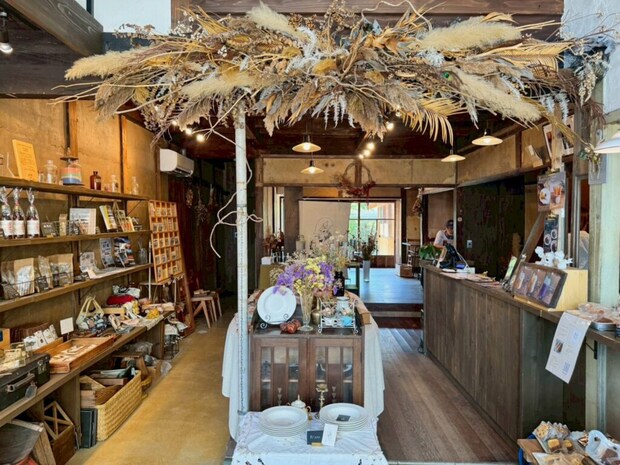 店内には地元の作家さんによる雑貨やアクセサリーが並び、メニューが届くまでの間も店内をぐるりと見て回る楽しさがあります。