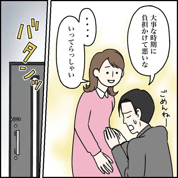 そして、「大事な時期に負担かけて悪いな」そう言いながら、私のお腹に向かって手を合わせ「ごめんねー」と赤ちゃんにも謝る太一に、「・・いってらっしゃい」と声をかけて見送りました。