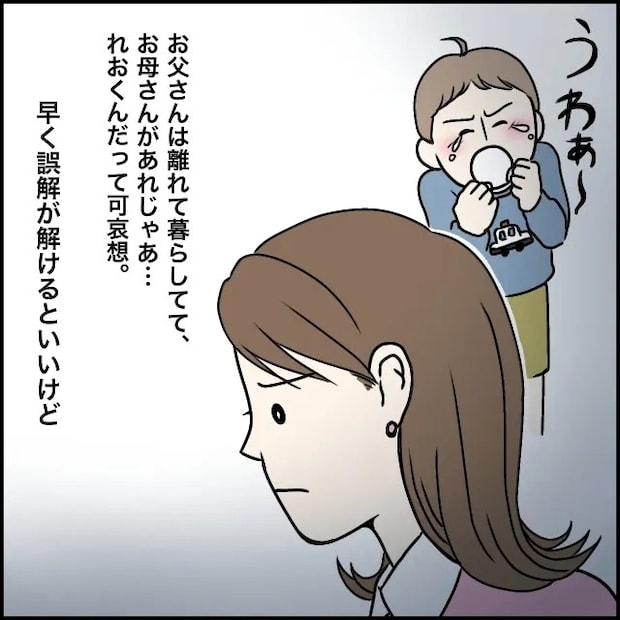 「お父さんは離れて暮らしてて、お母さんがあれじゃあ・・れおくんだって可哀想。早く誤解が解けるといいけど」泣いていたれおくんのことを思うといたたまれない気持ちになりました。