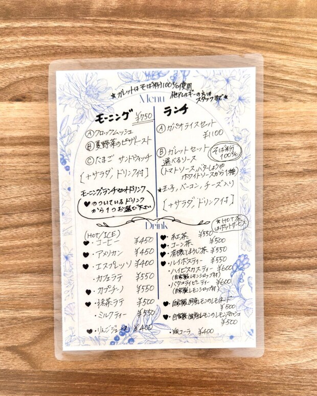 今回頂いたのはドリンク付きの「ガレットセット(ソースはホワイトソース)」