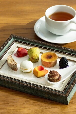 食事の後は、アフタヌーンティー仕立てのデザートがスタート。旬のフルーツを使った一皿、ミルフィーユなどのケーキを味わった後は、とっておきのデザートが登場するという。小菓子に隠れたシェフの遊び心を楽しんで。