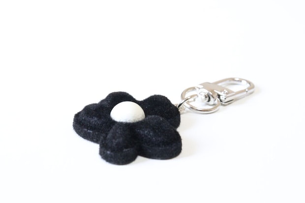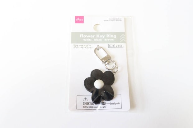 今回ご紹介するのは、こちらの『花キーホルダー(ホワイト、ブラック、ブラウン)』。お花のモチーフのおしゃれなキーホルダーです。