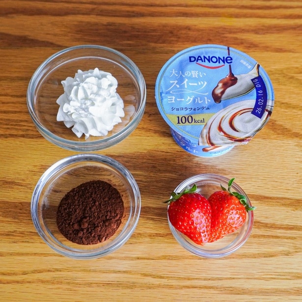 コンビニやスーパーマーケットで購入できる「ダノン 大人の賢いスイーツヨーグルト ショコラフォンデュ」を使って、たったの2ステップで完成するのに驚くほどリッチな「ふわとろ生チョコムース」レシピをご紹介します。