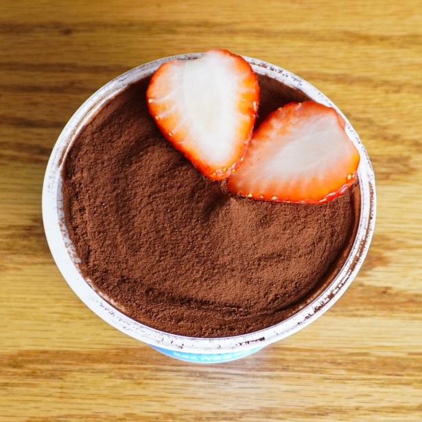 2. 表面にココアパウダーを振り、お好みでフルーツをのせる。