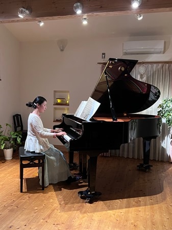 設置しているピアノは、2021年製のYAMAHA C3X espressivo。このピアノには、選び抜かれたスプルース材(響板)とアフリカンマホガニー(内部部材)など、世界中から厳選された天然素材が使用されている。