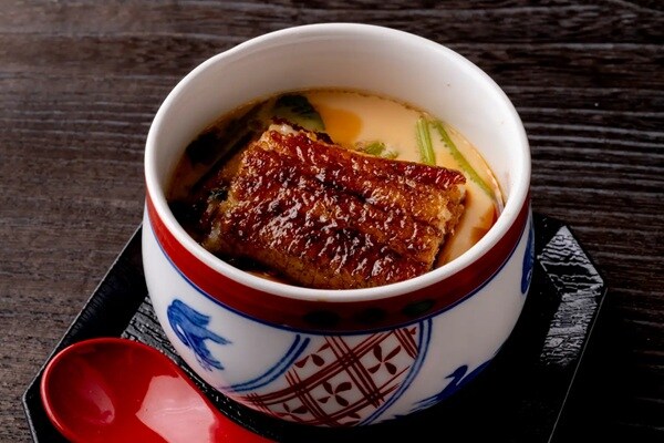 「茶碗蒸し」1,200円(税込)は、ふっくらと焼き上げた「鰻の蒲焼」を贅沢に乗せた梅田自慢の茶碗蒸しとなっている。