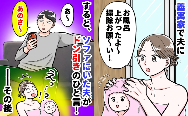 義実家で夫に「お風呂掃除お願い」と頼んだら⇒ありえない返答に絶句!夫の素顔にドン引きし…その後は