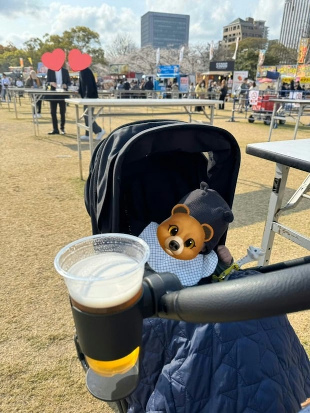 育児をしていると、予定通りにいかないことが日常茶飯事になりますよね。しかし、こういう「予定外」は、うれしいものです。赤ちゃんとお散歩に出かけて、たまたま見つけたビールを楽しむ。かわいい我が子と桜を見ながら飲むビールは、さぞおいしかったことでしょう。