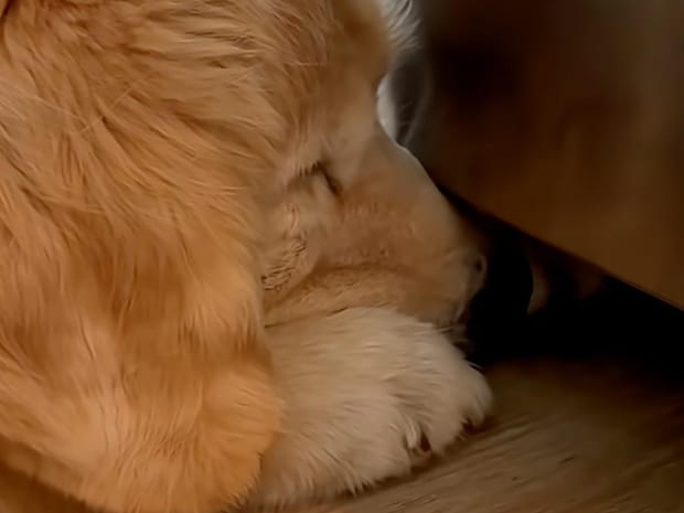 何かを見つけた様子のゴールデンレトリバーさん。