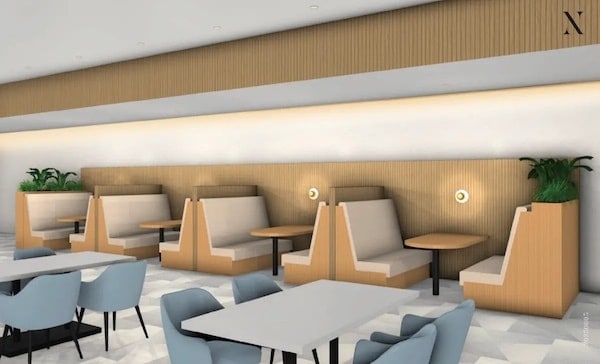ゆったりと過ごせるよう、空港のラウンジのような落ち着いた雰囲気を持たせ、高級感のあるデザインに仕上げている。カフェはさまざまな種類の飲み物を用意し、商談スペースやラウンジスペースへ自由に持ち込める。