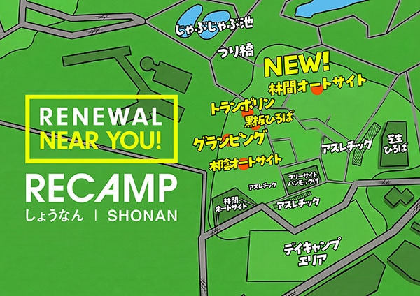 R.projectの子会社でキャンプ場の企画・運営を手がけるRecampは、千葉県柏市「手賀の丘公園」内で運営するキャンプ場「RECAMP しょうなん」の大規模リニューアルを実施し、4月3日(金)にリニューアルオープンする。予約受付は2月5日(木)より、キャンプ場検索・予約サイト「なっぷ」にて開始した。
