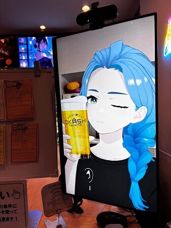 店に入ったら、店内モニターのキャストと乾杯し、会話や企画などを楽しもう。
