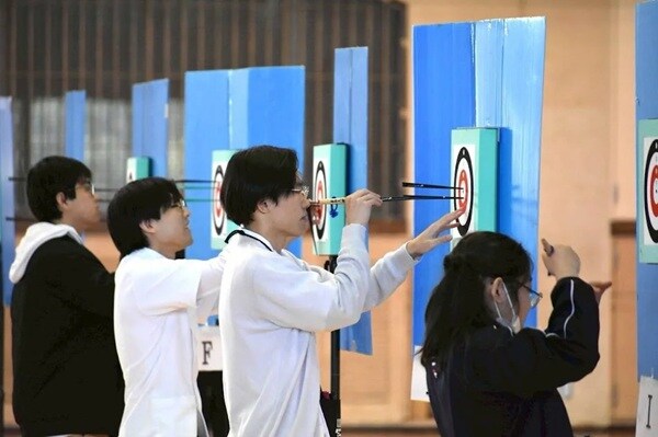 的をめがけ息を使って放つ「スポーツウエルネス吹矢」