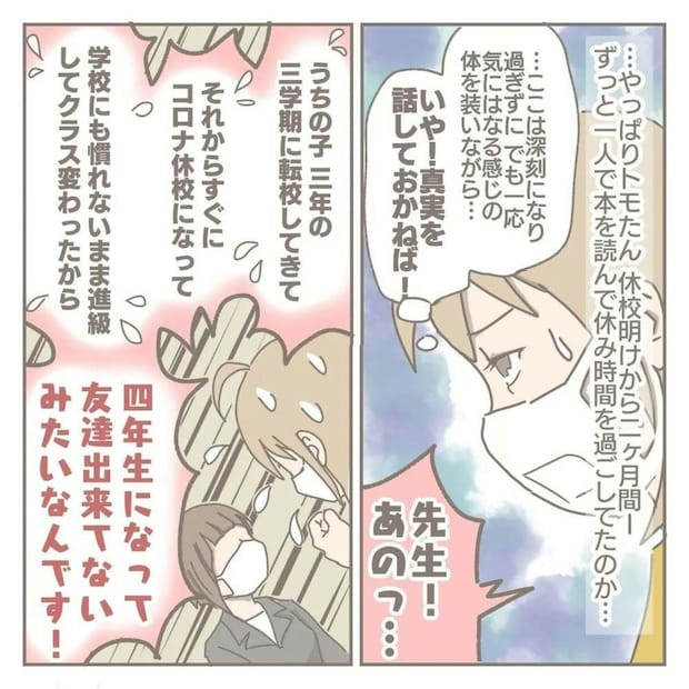 学校での様子は、あまり問題ないという判断のようです。しかし、ヨカさんは遊べるほどの友だちがいないことを心配します。