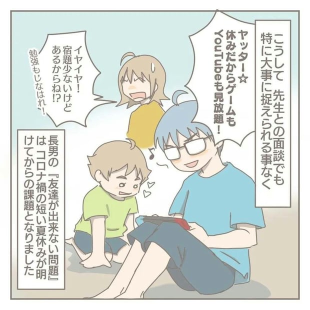 長男トモたんの問題に改めて向き合うヨカさん。学校の面談で担任の先生に相談をしますが、あまりよい結果を得ることはできませんでした。こうして、夏休みに突入するのでした。