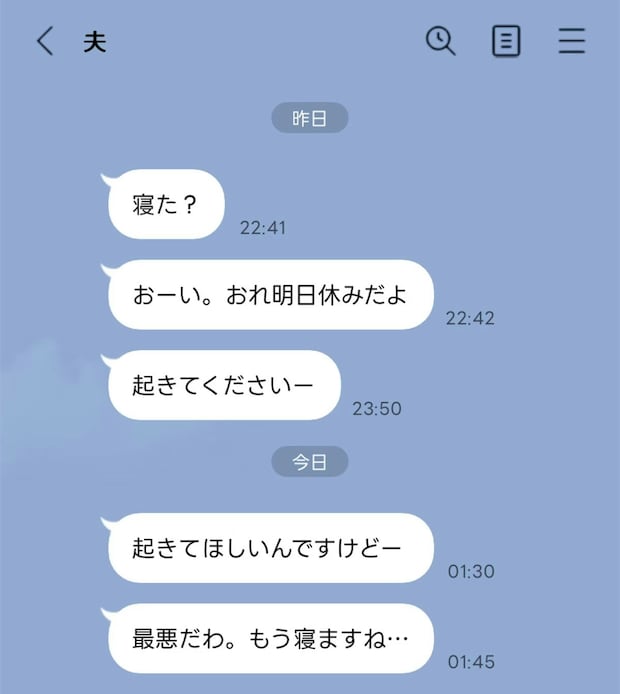 朝起きたら不機嫌なっているLINEたくさん届いてました、旦那不機嫌で。