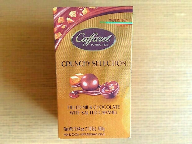 コストコでは毎年同ブランドの商品が取り扱われていますが、こちらは「塩キャラメル入りクランチチョコレート」です。