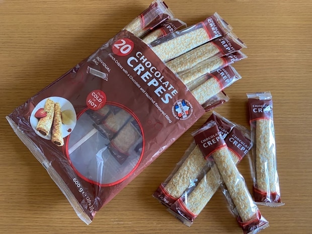 非常に薄いクレープ生地で、ヘーゼルナッツ風味のチョコレートを包み込んでいます。冷たいまま食べるのはもちろん、温めることで中のチョコが溶け出し、2種類の異なる美味しさを堪能できます。