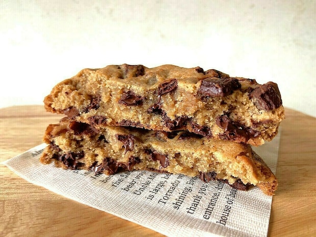 コストコのフードコートの商品で、巨大なサイズが特徴の「ダブルチョコチャンククッキー」。