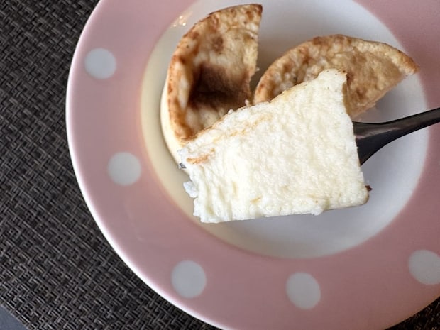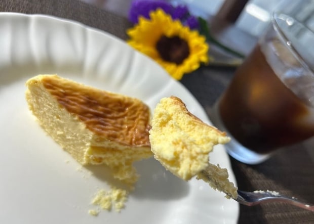 表面にはしっかりと焼き目がついていますが、中はレアチーズに近いみずみずしさがあります。