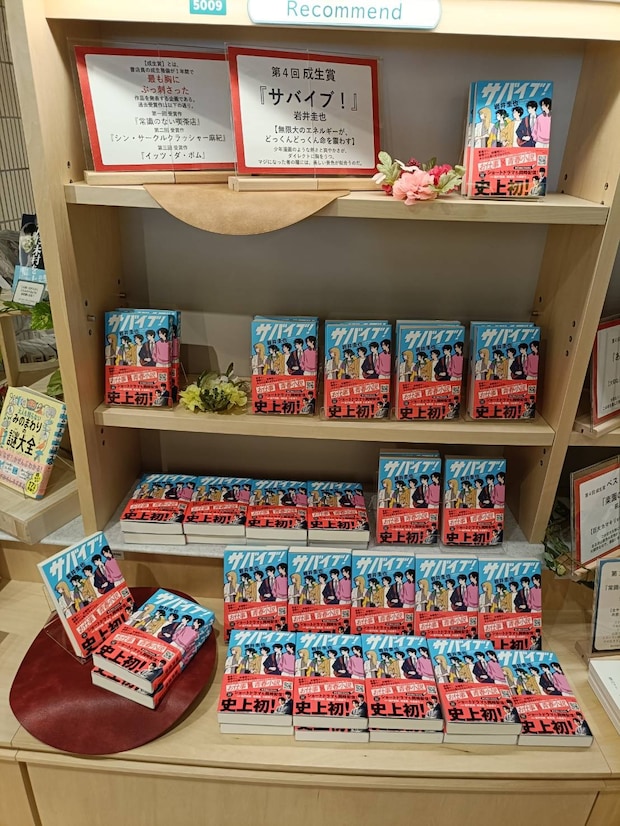 その真横には成生賞の作品が展開されていた。第4回受賞作の『サバイブ!』はひと際目立つ場所でどーんと展開されている。ありがとうございます。