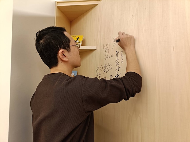 壁面裏には、お店を訪れた作家たちのサインがあった。僭越ながら、岩井も書かせてもらった。