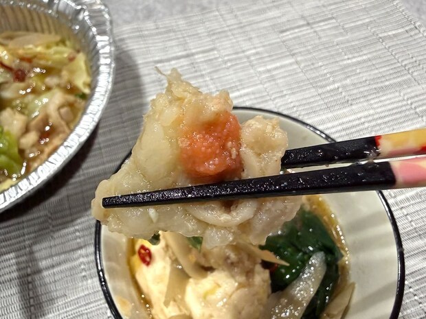 まずはメインのもつを実食。たっぷりもつが入っており、もつ好きにはたまらない贅沢感のある一品です。