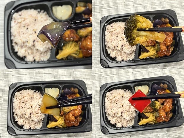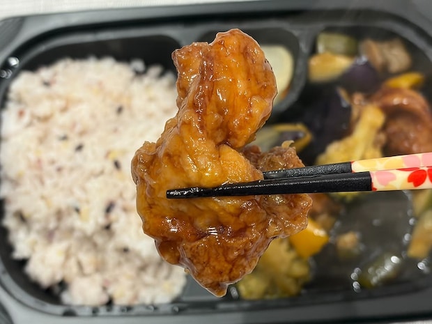 から揚げ、なす、ブロッコリー、パプリカ、ズッキーニを黒酢で和え、さらにご飯には十三穀米を採用した一品。価格は810円(税込)で、赤・緑・紫の鮮やかさも魅力的です!