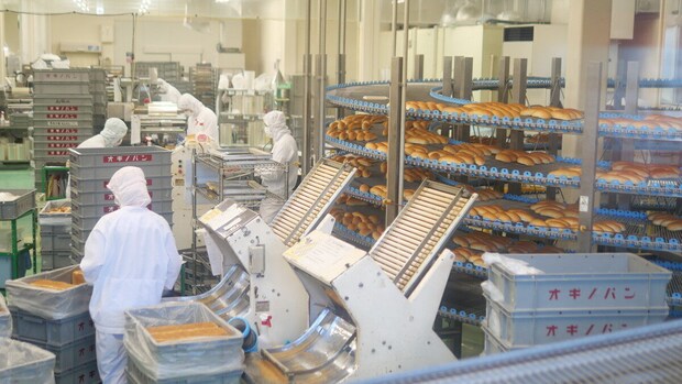 1日1万5000個以上のパンを製造するオギノパンの工場では、パンができる様子を間近で見学できます。職人さんの手によって生地がこねられ、こんがり焼き上がるまでの過程は見ているだけでワクワク!