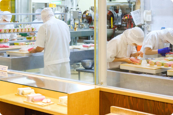 崎陽軒の横浜工場見学では、横浜名物のシュウマイやお弁当がどのように作られているのかを、ガラス越しに見たり映像で学んだりできます。