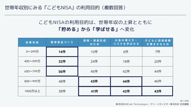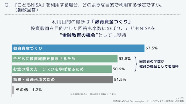 利用目的は「教育資金づくり」が最多、金融教育目的は約半数に