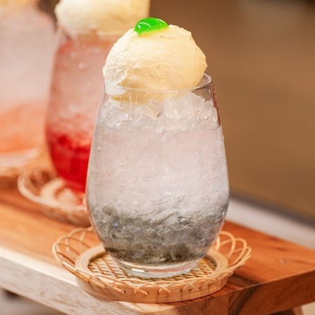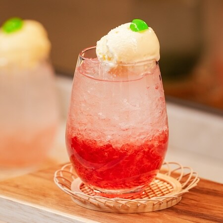 「イチゴ」の3種のフレーバーを用意。花の香りや果実のニュアンスをほんのりとまとわせたクリームソーダは、ランチ後のひと息や、バータイムのノンアルコールメニューとしてもおすすめだ。